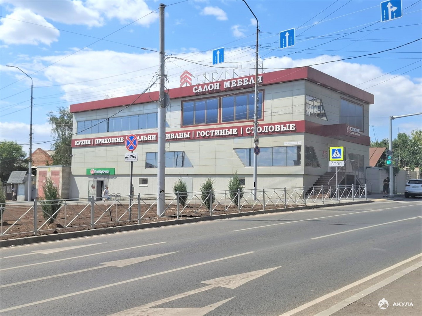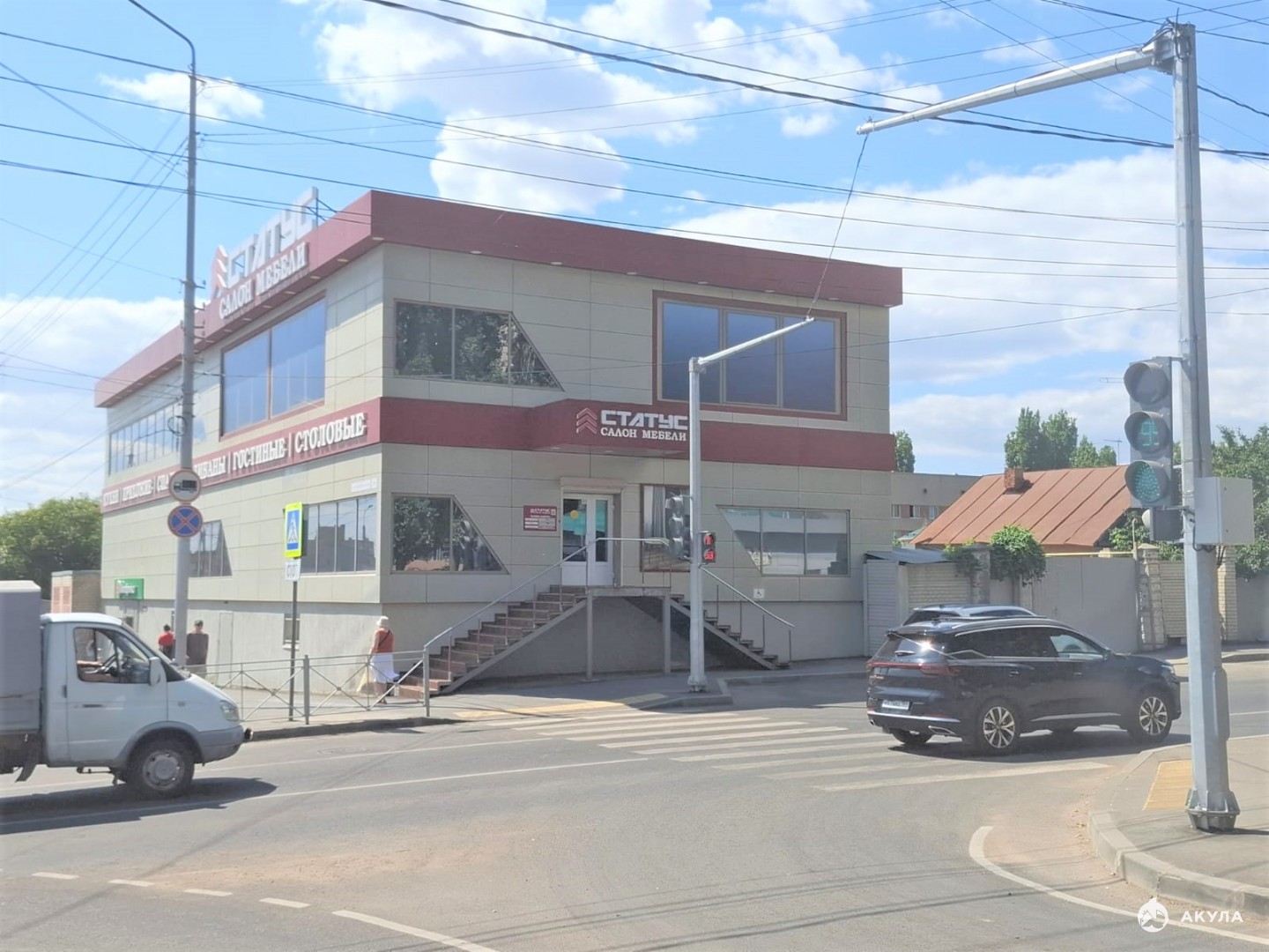 Помещение располагается в центральном микрорайоне рядом с мостом через Волгу. Напротив остановка общественного транспорта. Большой пешеходный и автомобильный трафик. Само здание видно издалека, от Энгельского моста через Волгу. В данном месте большой спрос на аренду.
