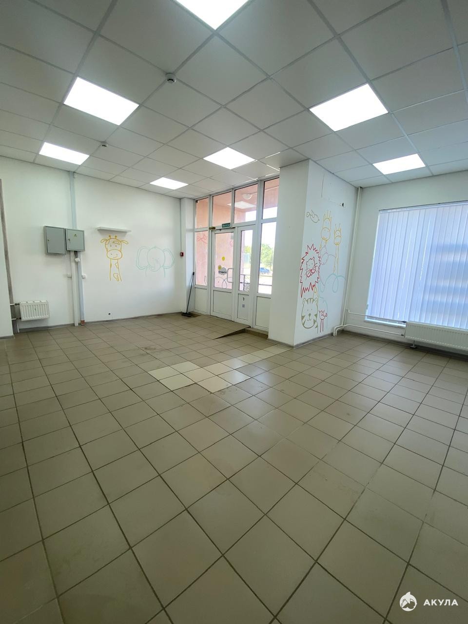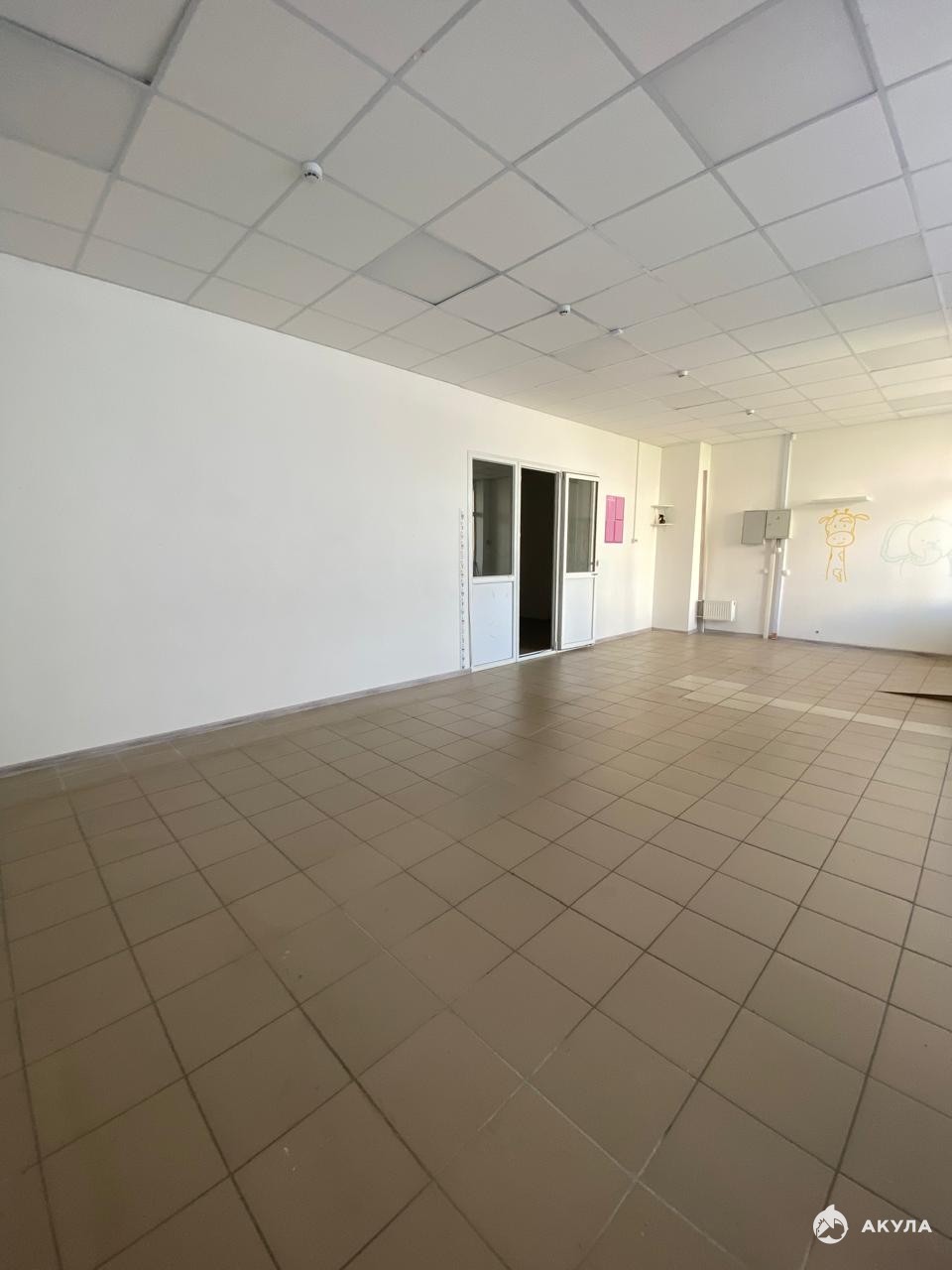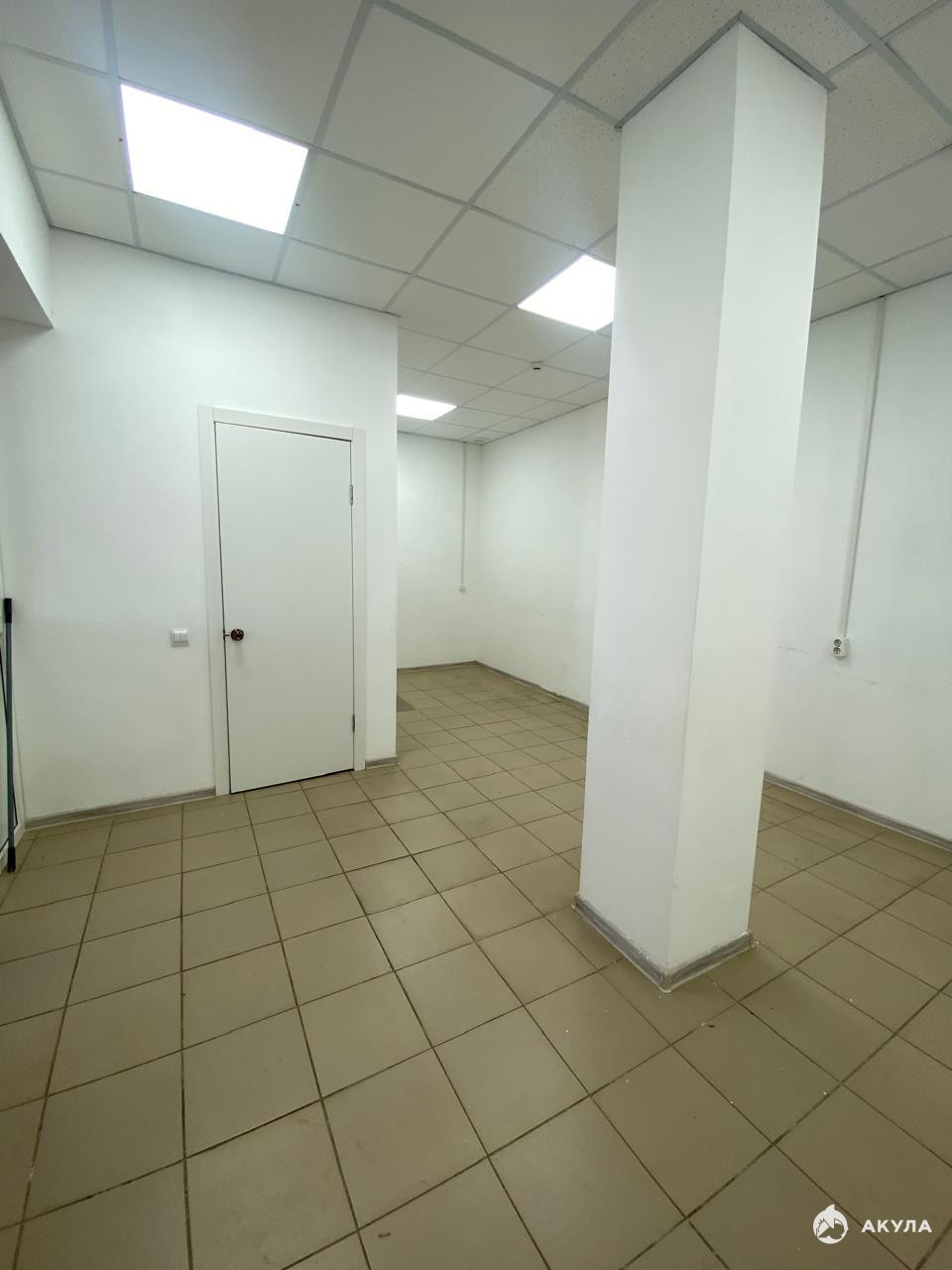 Помещение с ремонтом. Напольная плитка. Потолок навесной. Стены окрашены.