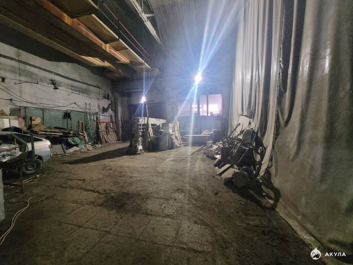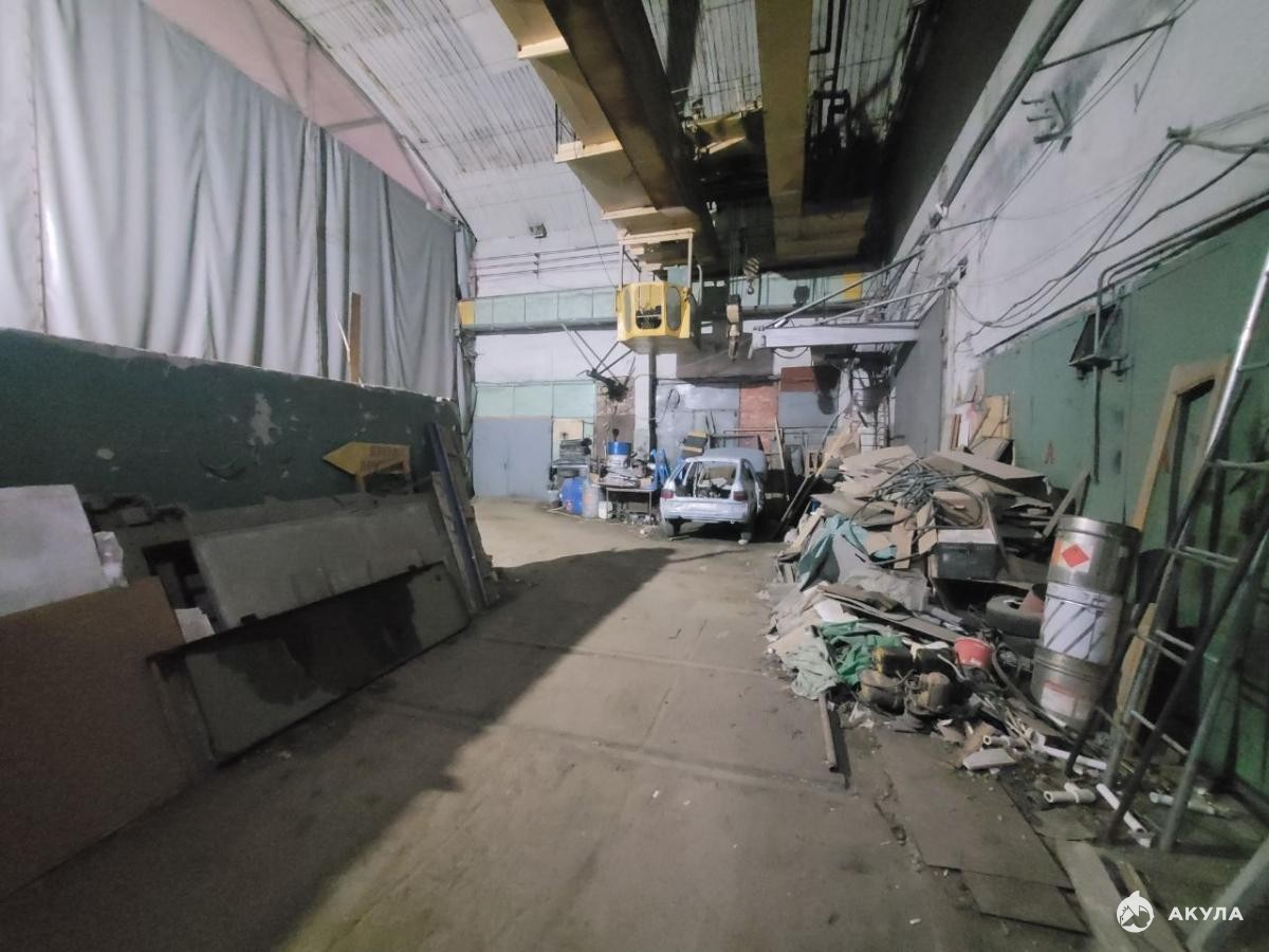 Большой зал с высотой потолков 7 метров 200 м2 с краном, помещение с подъемником 50 м2 и 20 м2.