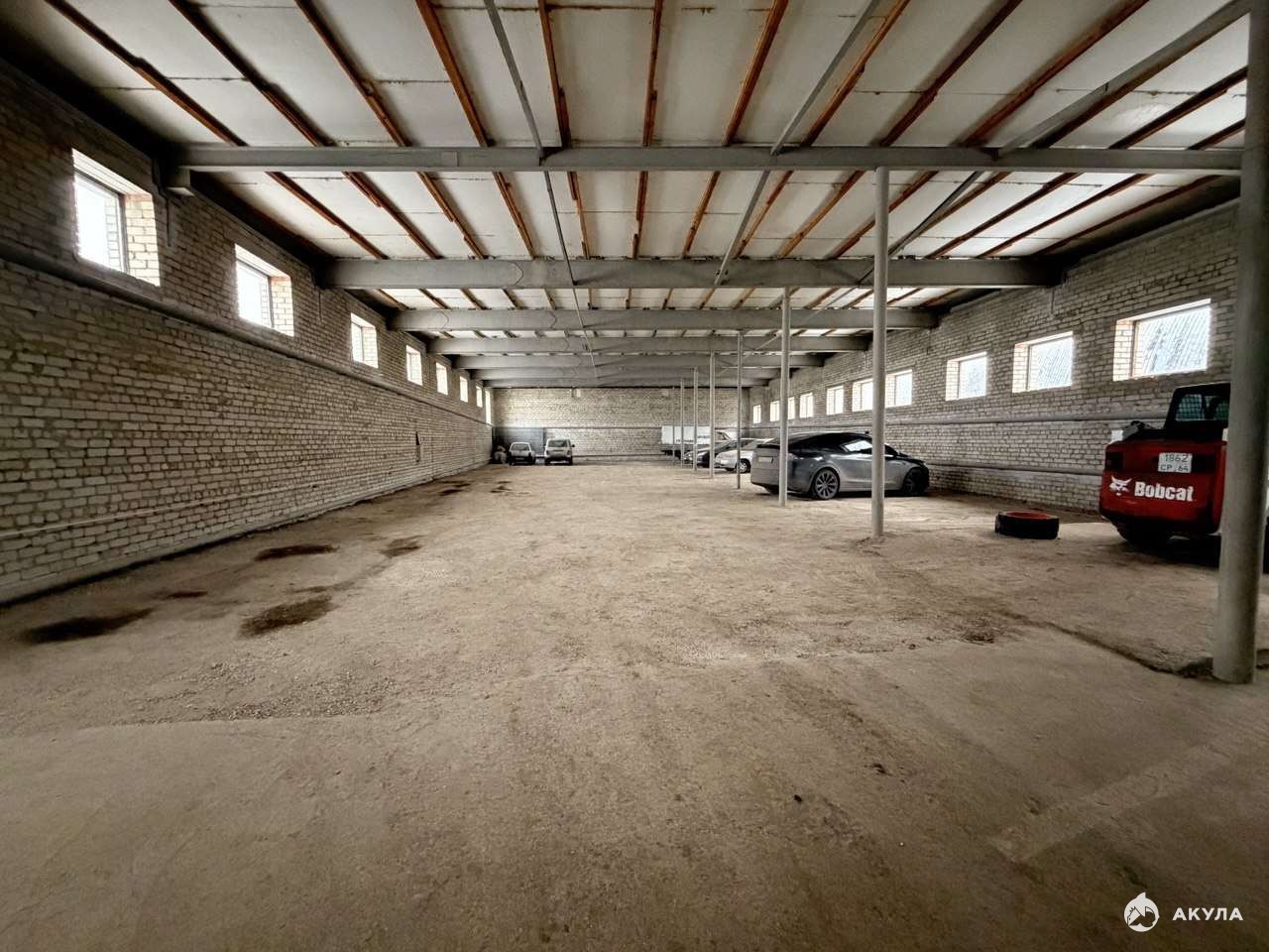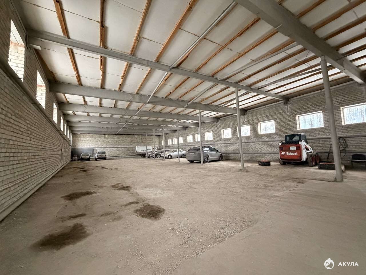 Высота потолка 6, 5 метров, ворота 4, 2 метров.