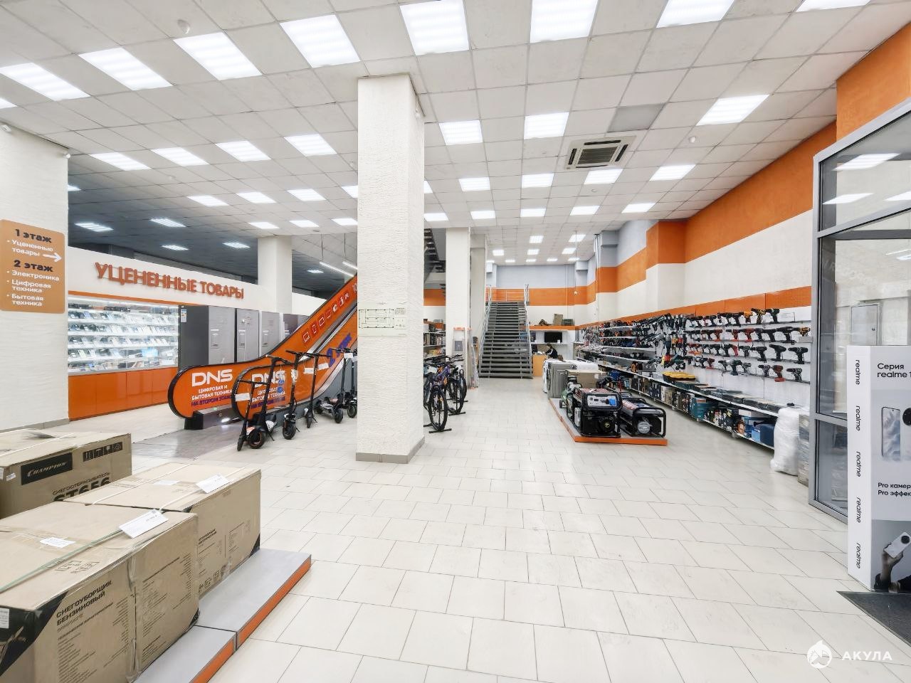 Помещение на первом этаже 280 м2, можно увеличить еще на 200 м2, на первом этаже широкая лестница и эскалатор на 2-й этаж. Помещение 1096, 4 м2 на втором этаже. На 3-м этаже складское помещение 470 м2, оснащено грузовым лифтом, габариты лифта 3 х 2 х 2.2 м, грузоподъёмность 3 т.