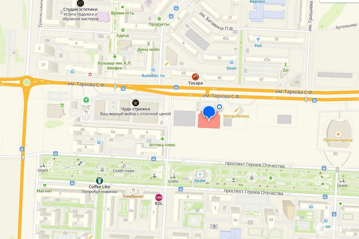 Отлично подойдет под продуктовый магазин, пекарню, непродовольственные товары. Так же отлично подойдет под спорт питание, спорт товары – так как рядом расположены несколько спортклубов, а так же дворец водных видов спорта, «Протон Арена», хоккейный «Кристаллик».