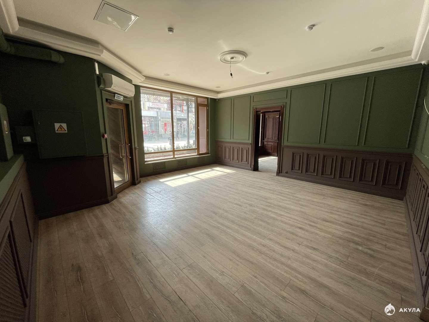 Помещение оборудовано всеми коммуникациями, потолки 3, 2 м. Два отдельных входа с фасада. Прекрасная планировка с несколькими большими залами. Несколько С/У.