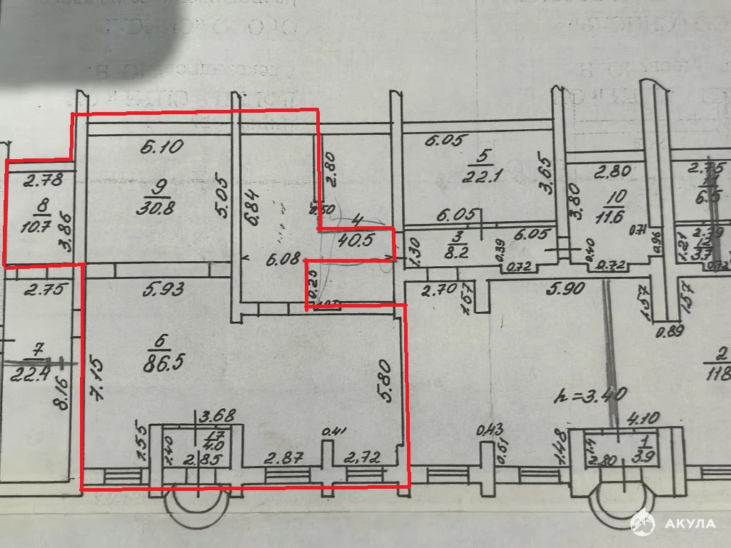высота потолков от 3м,