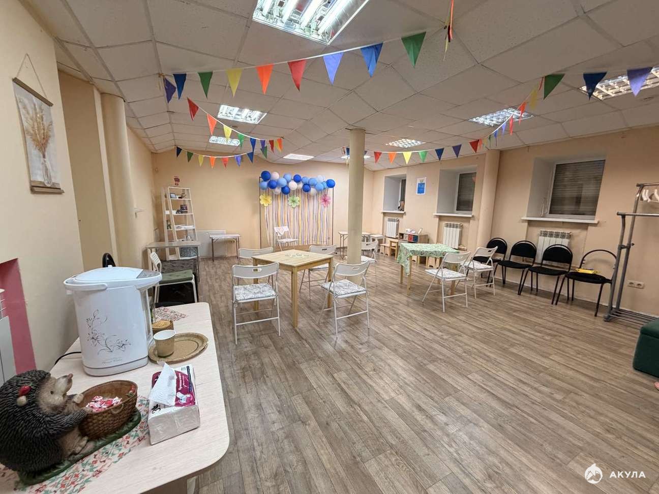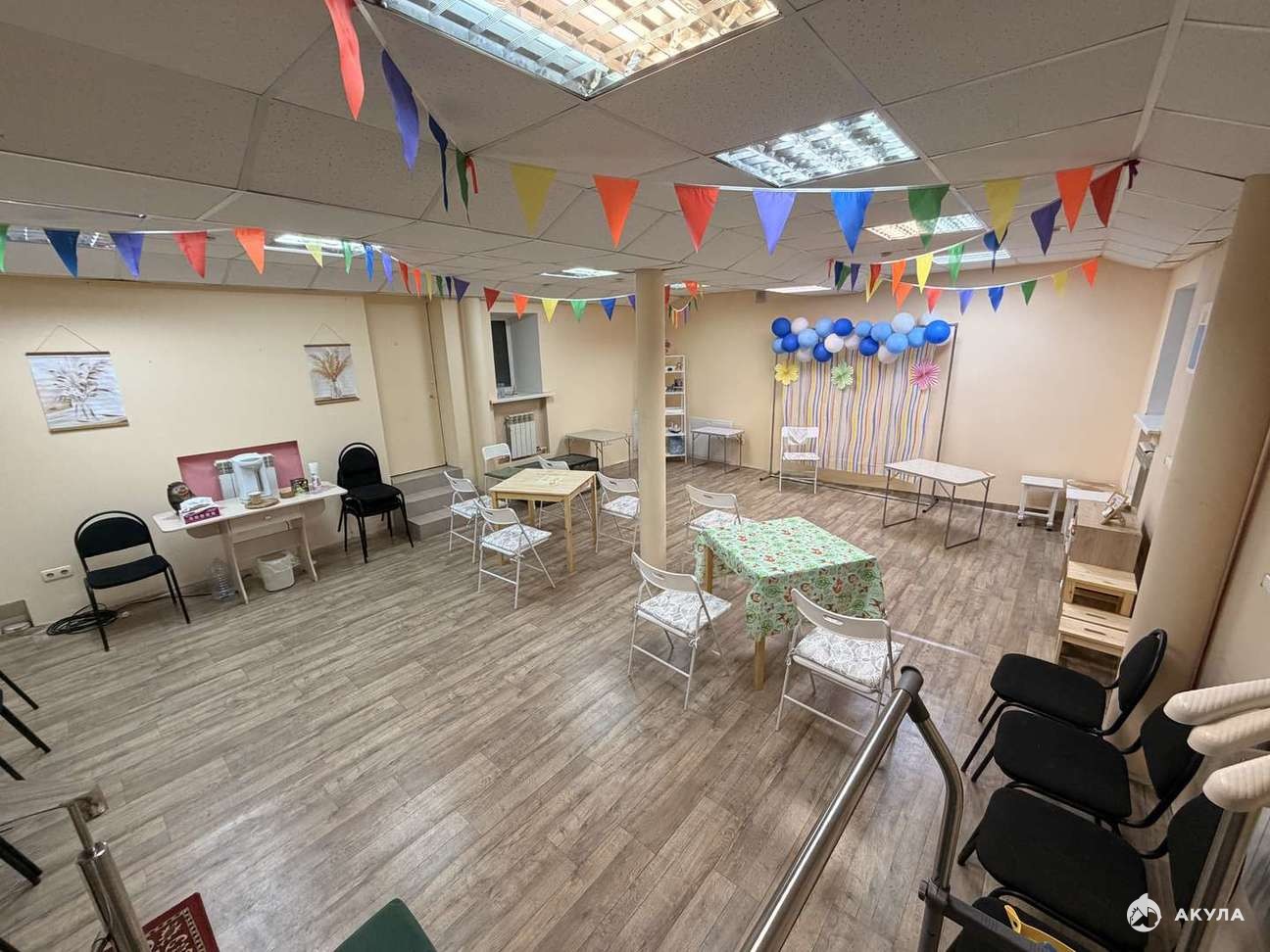 Соседние помещения занимают магазины, кафе, банк, предприятия сферы услуг.