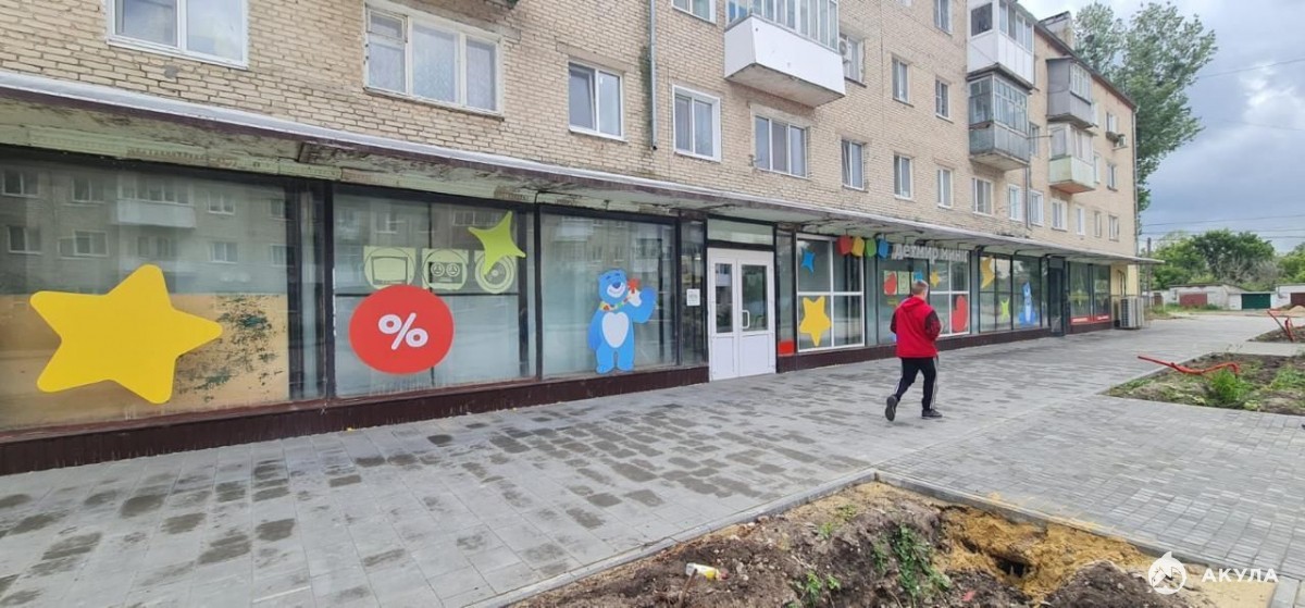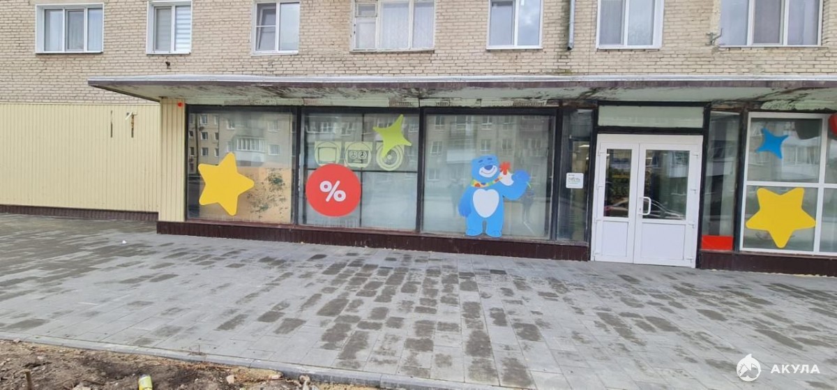 Помещение расположено в центре города, рядом с центральной площадью и администрацией. В окрестностях есть магазины «Спорт и туризм», «Чижик», «Пятёрочка», «Авоська» и детский сад. Подходит для размещения детского центра, медицинского учреждения, салона красоты, офиса и других видов деятельности. На данный момент помещение занимает магазин "Детский мир".