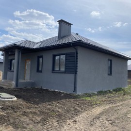 Продаётся дом 104 кв.м. с участком 8 соток. ОДНОЭТАЖНЫЙ ДОМ 104 М, С ТРЕМЯ СПАЛЬНЯМИ ДВЕ ПО 16, 5 М И ОДНА 13, 7 М. СВЕТЛАЯ КУХНЯ-ГОСТИНАЯ 25, 3, М. ИЗ КОТОРОЙ ВО ДВОР ВЕДЕТ ФРАНЦУЗСКИЙ ВЫХОД. БОЛЬШОЙ САНУЗЕЛ 8, 6 М, ПРОСТОРНЫЙ КОРИДОР И БОЙЛЕРНАЯ 3, 5 М Можно заказать строительство дома...