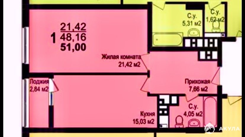 - 51 м²