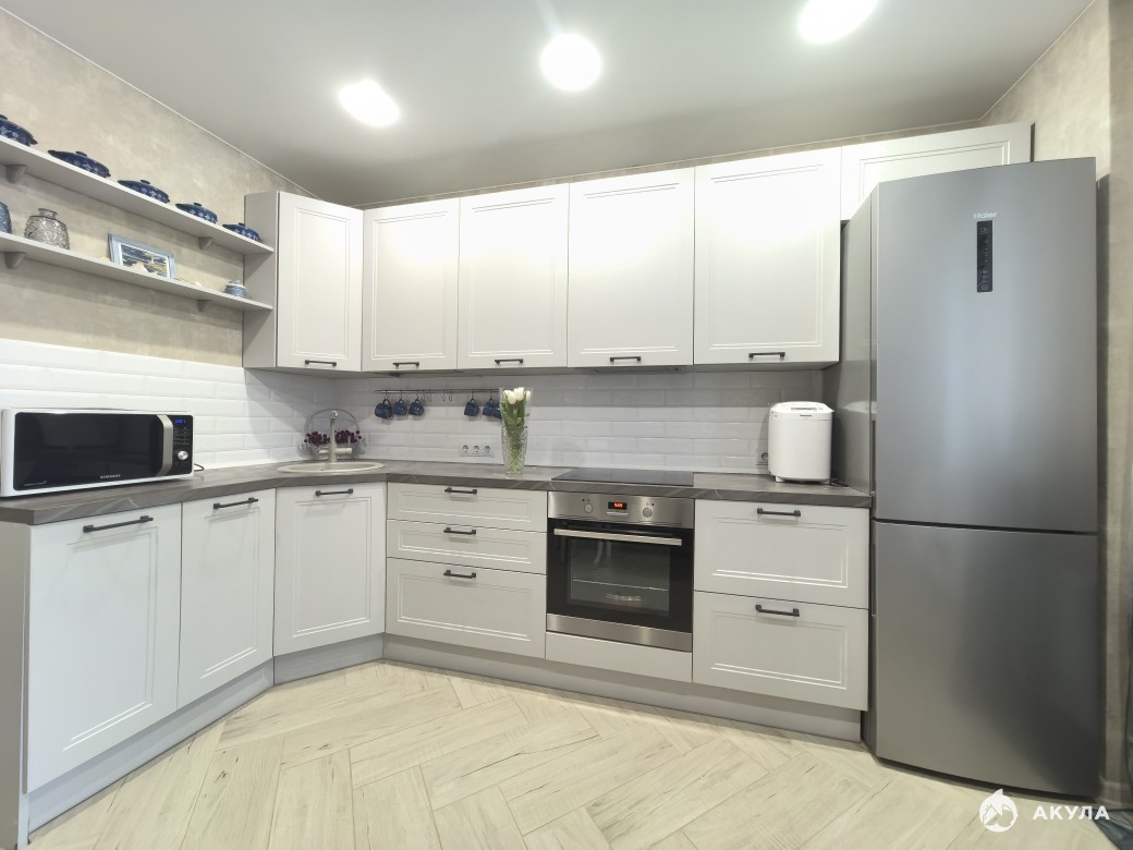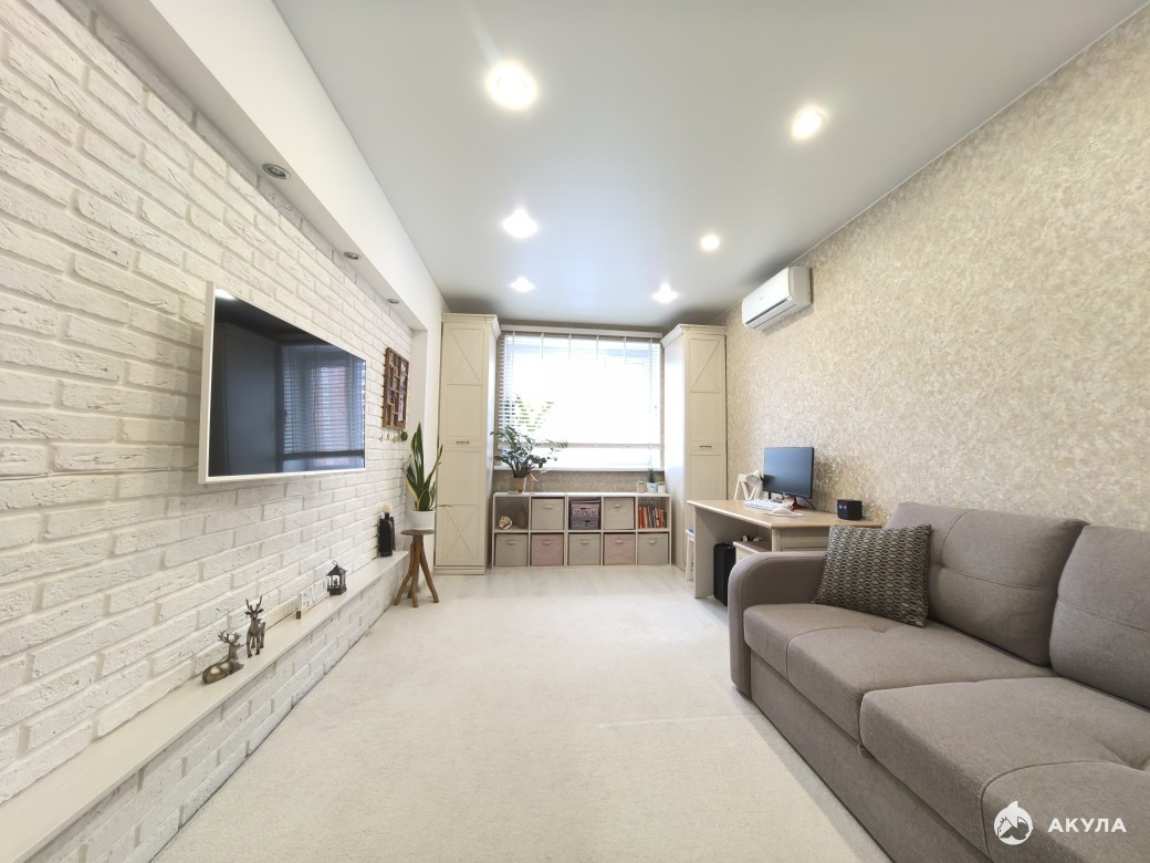 Ремонт выполнен из качественных стройматериалов в нейтральных тонах.
