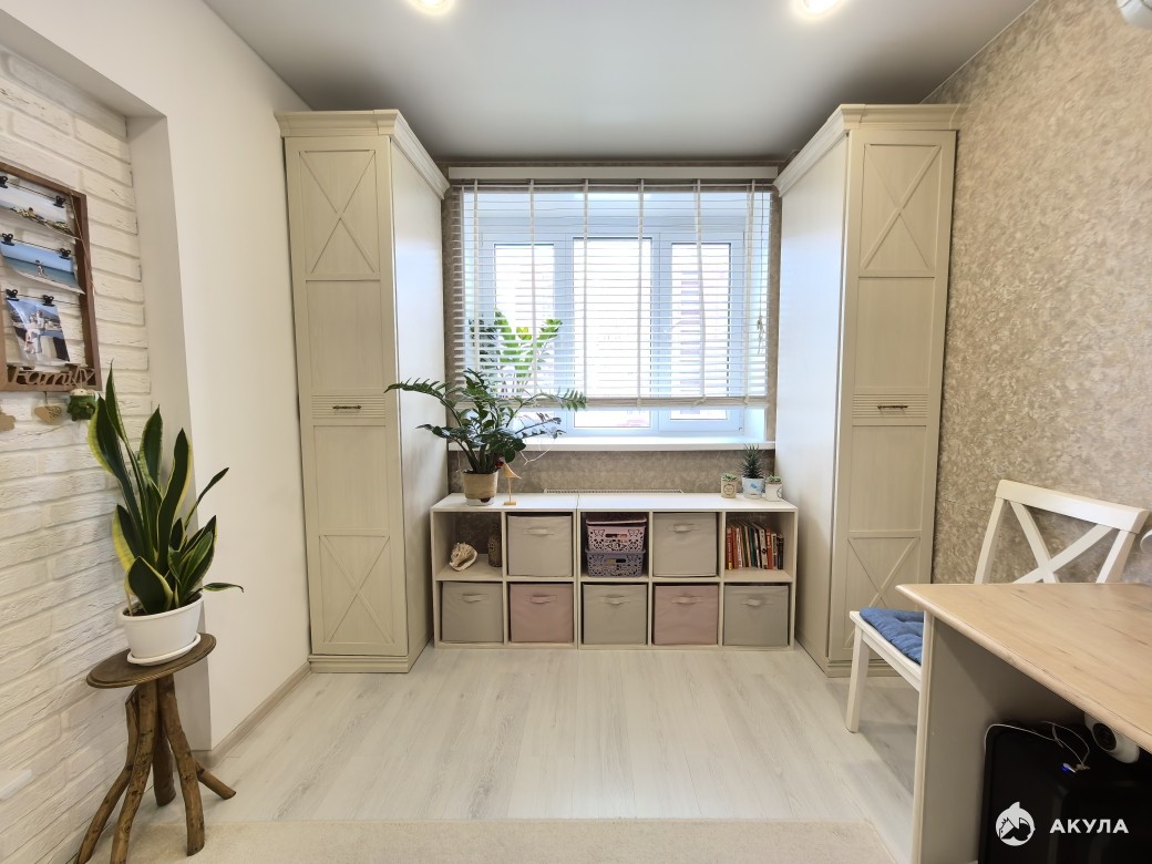 Планировка очень комфортная: просторная кухня с выходом на лоджию остеклена, утеплена, совмещенный сан. узел, гардеробная, комната.