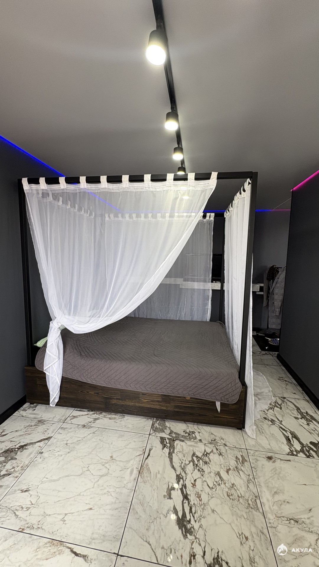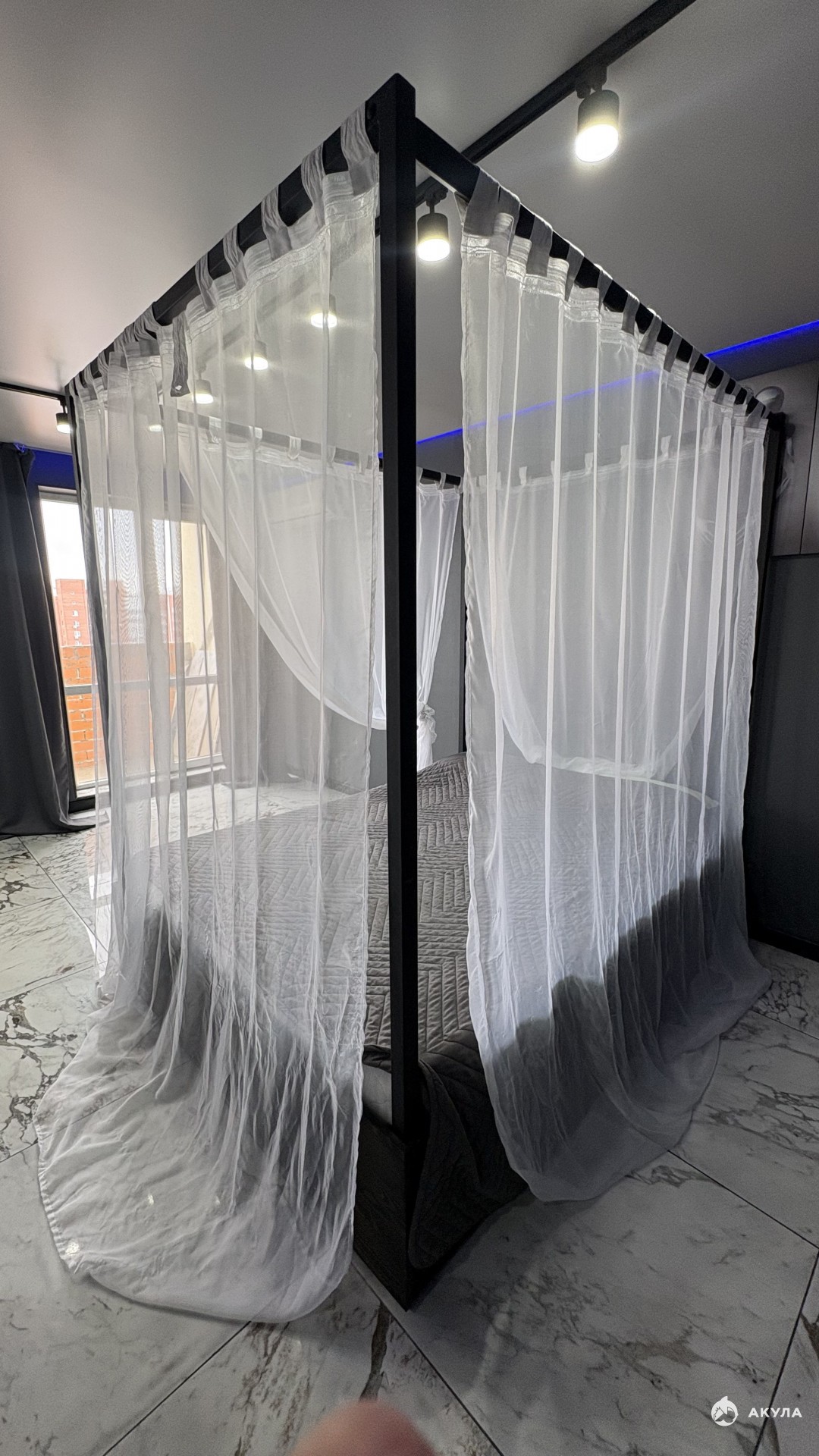 кровать с интересным дизайнерским решением, которая гармонично вписана в пространство