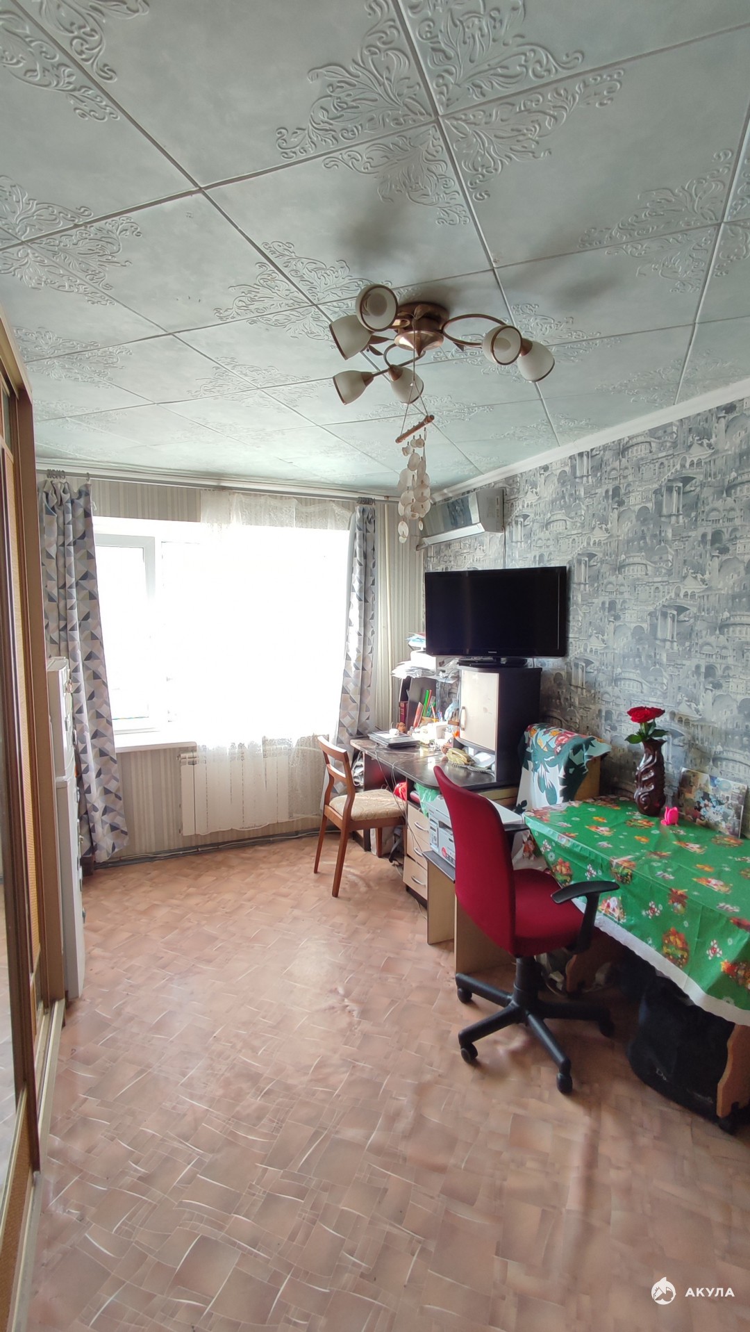 Квартира включает в себя комнату площадью 17, 2 кв.м., кухню 6, 5 кв.м., совмещенный санузел, удобную прихожую с встроенным шкафом. План есть в объявлении. Все помещения в жилом состоянии. Пластиковые окна, современные радиаторы отопления. Новым хозяевам остается кухонная мебель, водогрейный котел в ванной, шкаф и кондиционер в комнате.