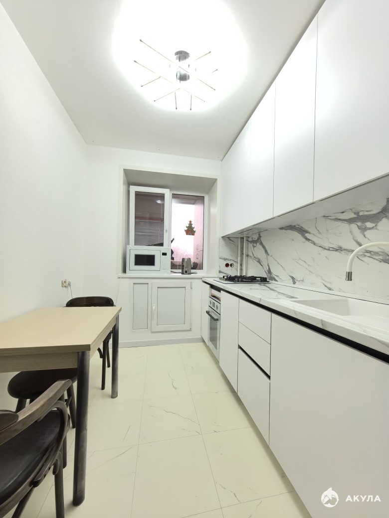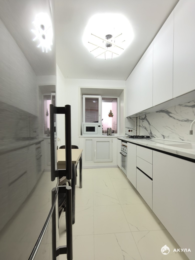 Окна пластиковые, потолки натяжные, сан. узел в кафеле. В кухне свежий ремонт, новая мебель и техника. В зале и коридоре требуется косметика. Этот момент учтен в цене.