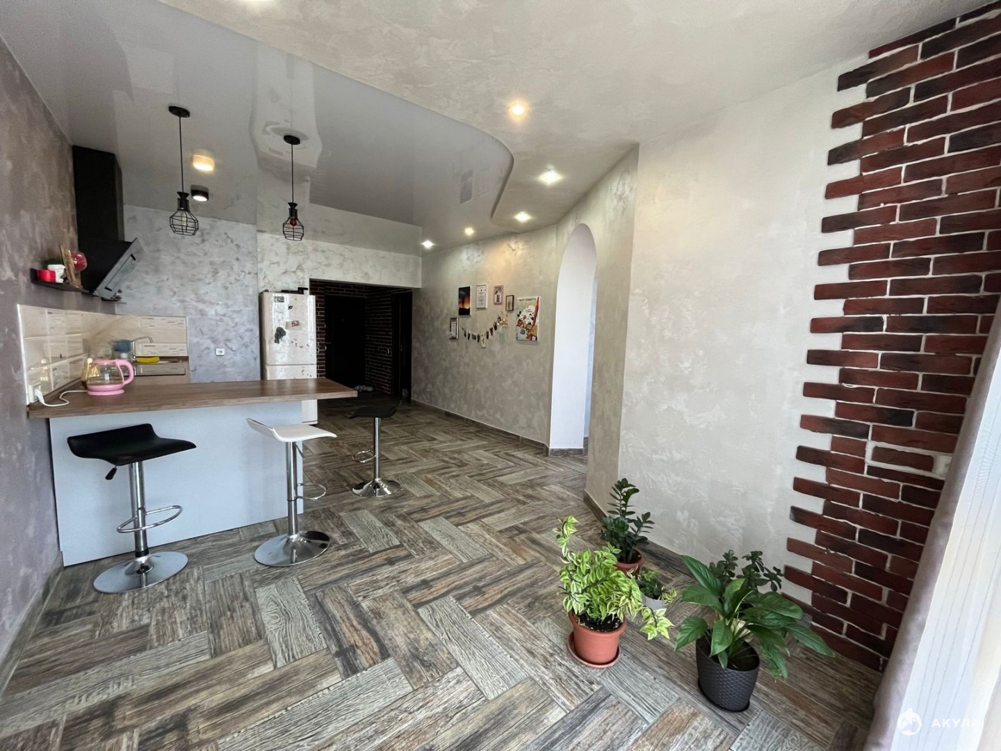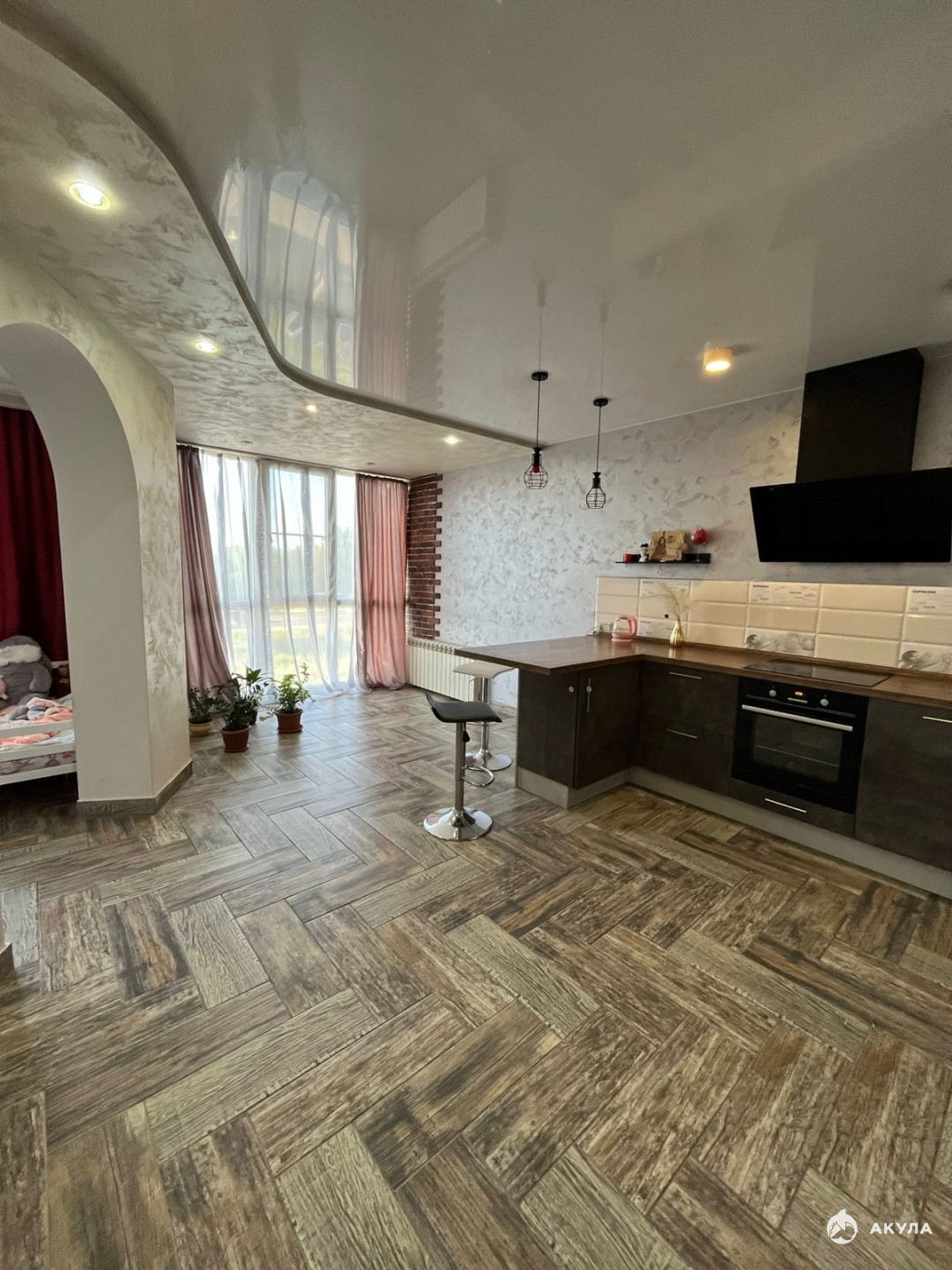 Планировка квартиры:просторная кухня гостиная, две комнаты, гардеробная комната, санузел совмещен.