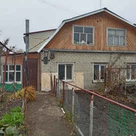 Часть дома площадью 36.6 с 2мя смежными комнатами.Дом требует ремонта, есть свет, вода, газ, сливная яма, АГВ, туалет на улице.Небольшой участок 2.35 кв.м., 2х этажный добротный сарай.Остановка общественного транспорта в шаговой доступности.