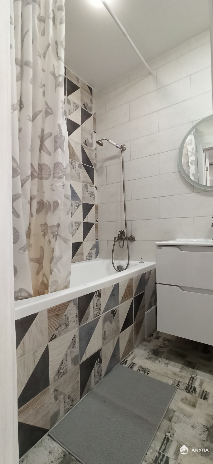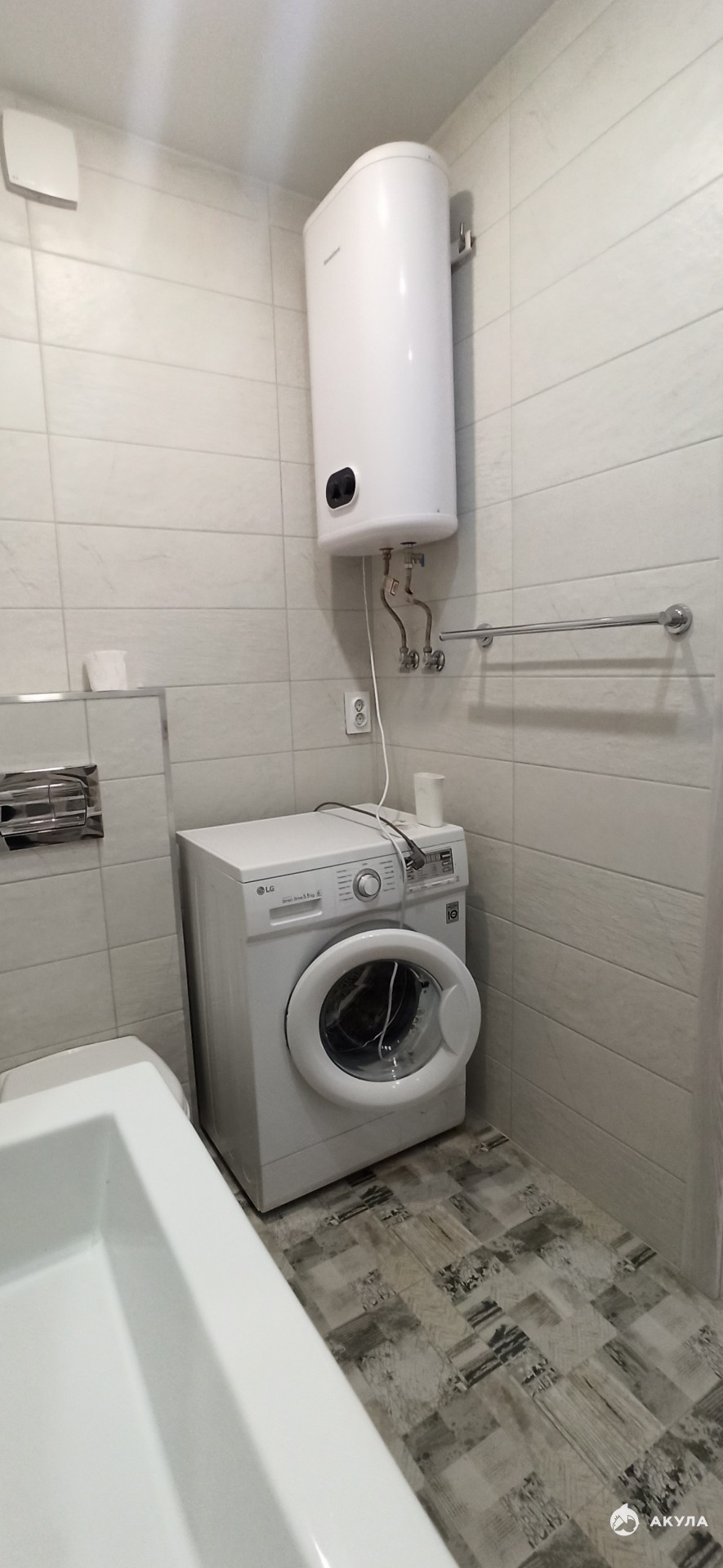 Установлен водонагреватель в ванной комнате.