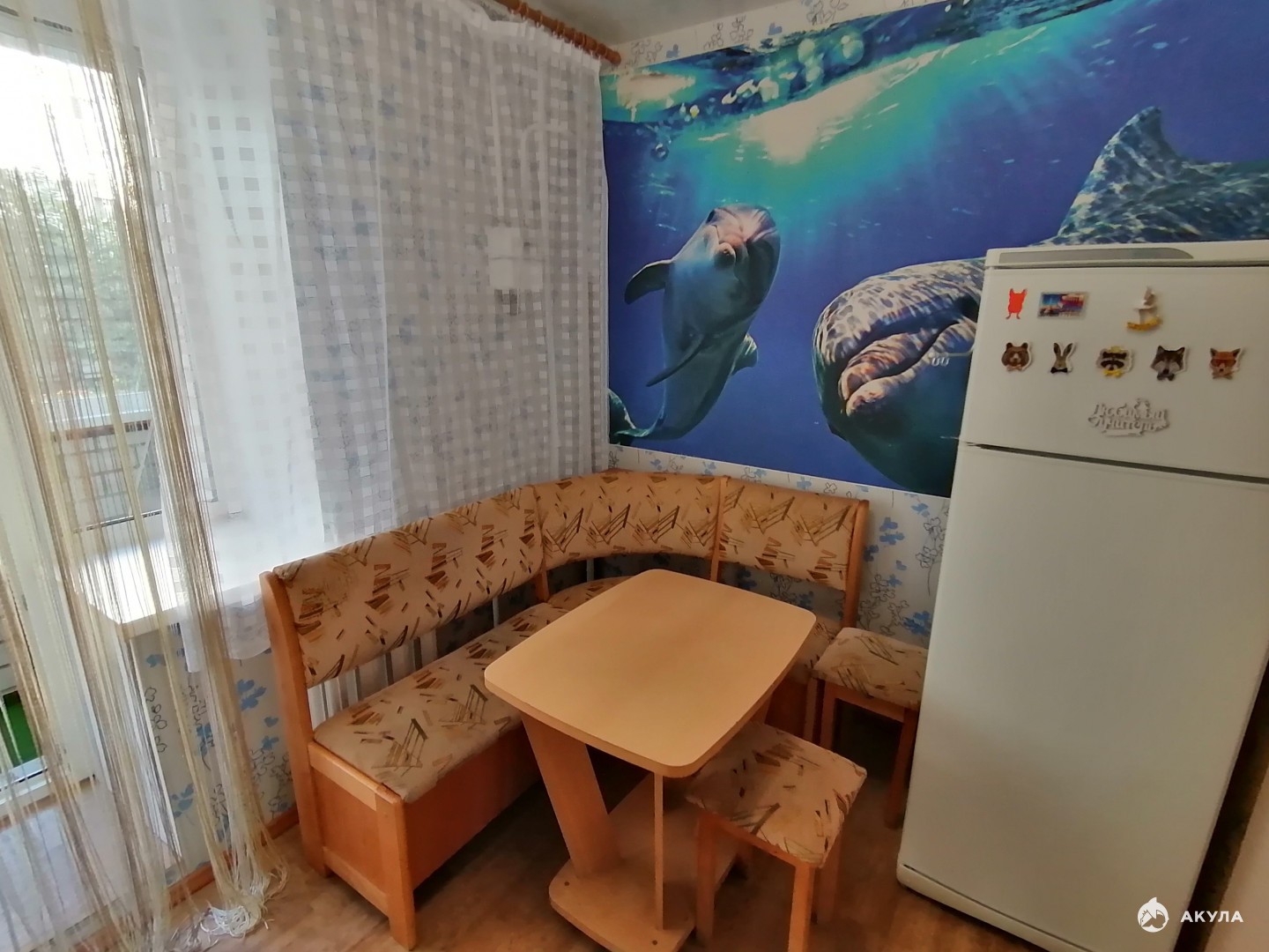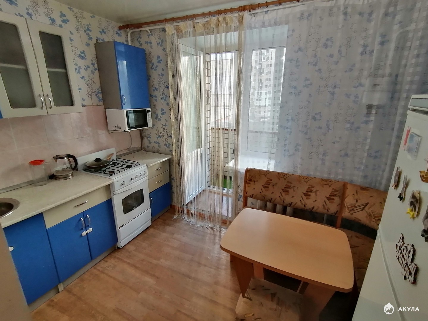 Квартира с балконом, со всей необходимой мебелью и техникой.