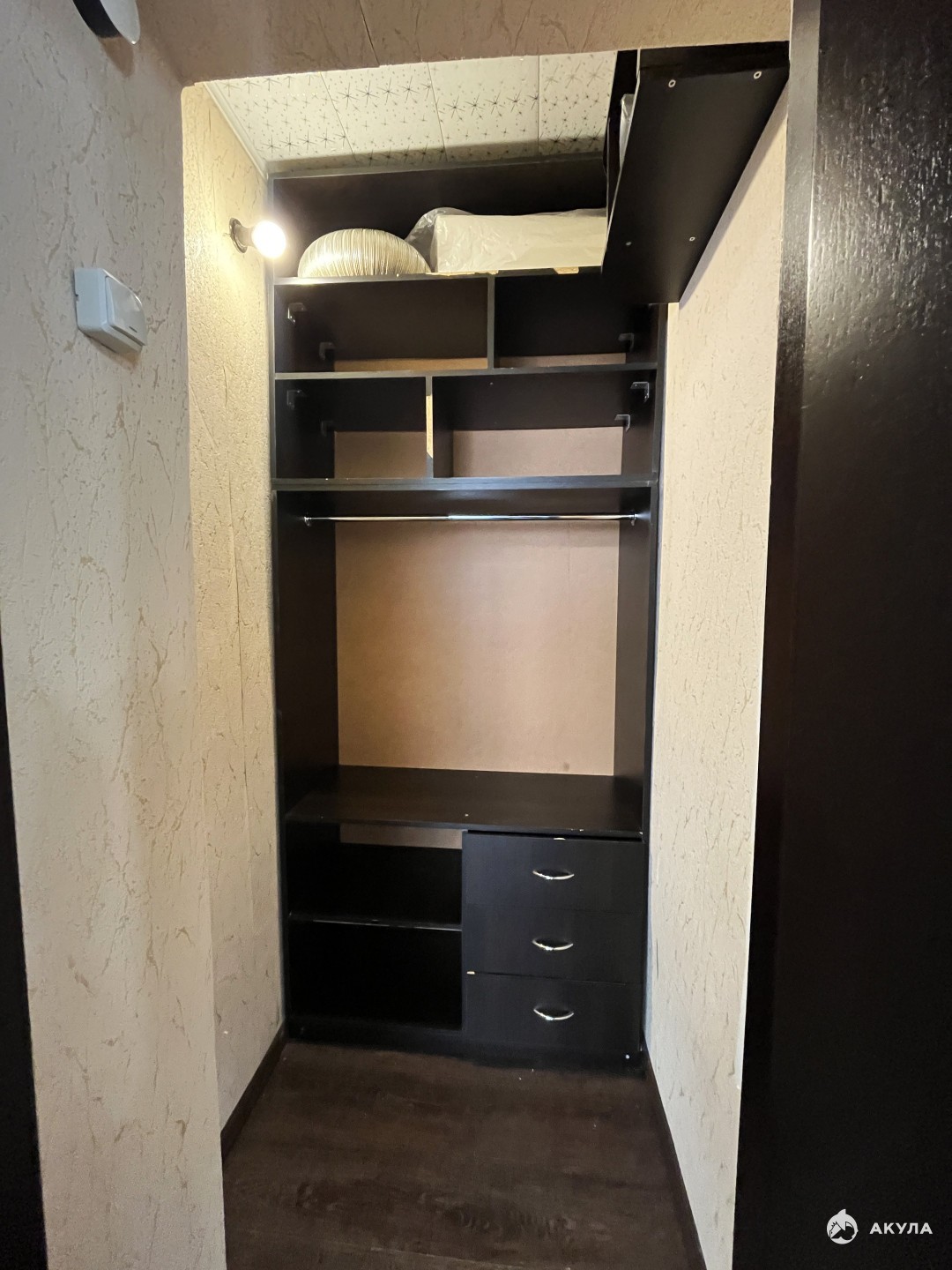 Пластиковые окна, металлическая входная входная дверь. В комнате есть вместительная гардеробная.