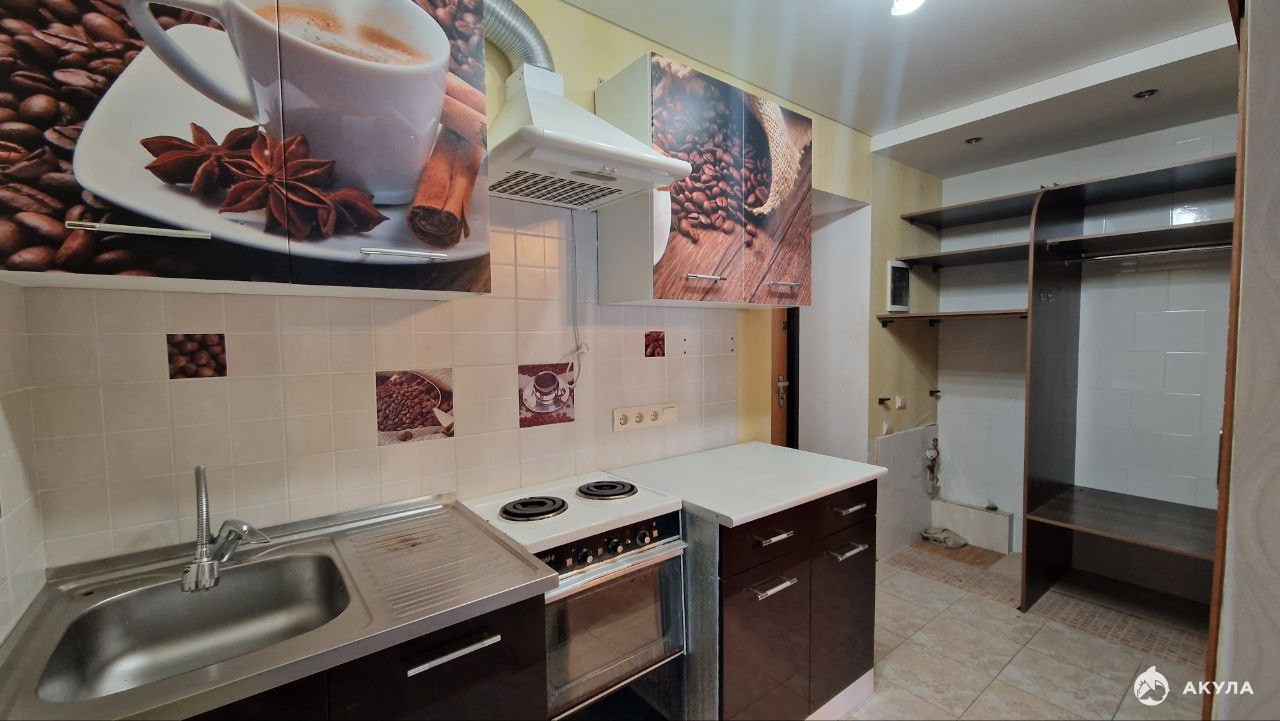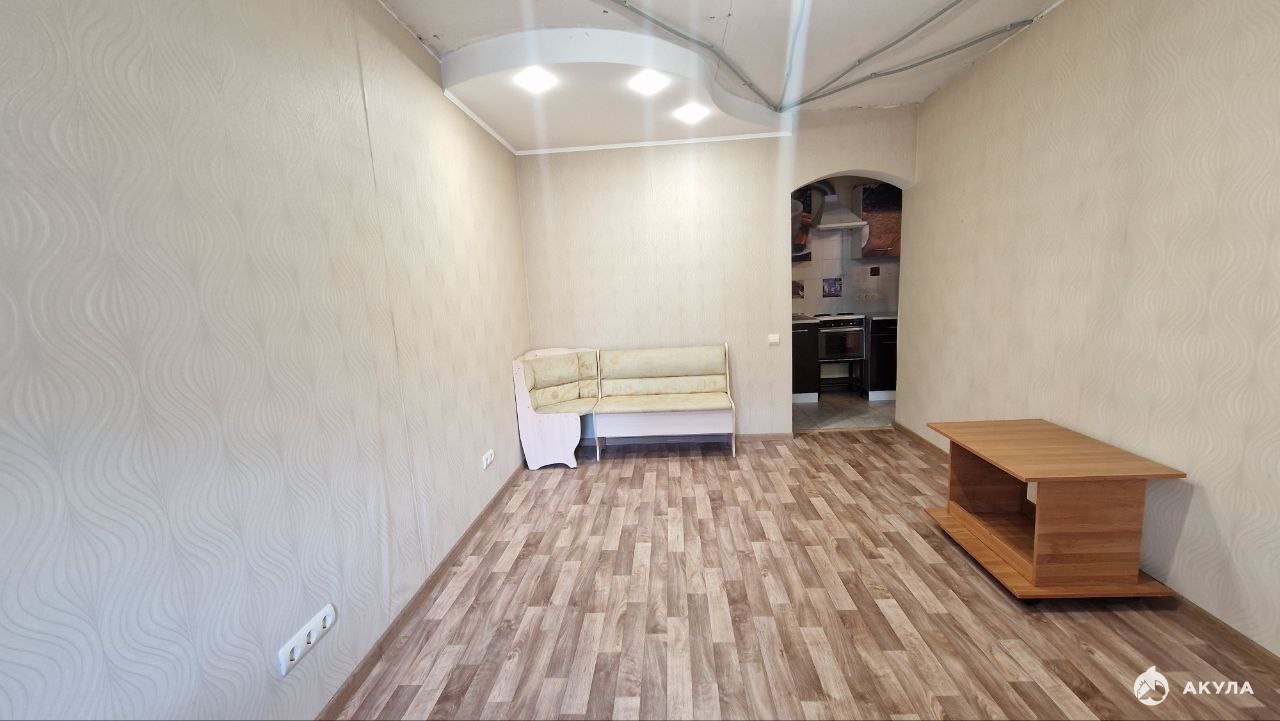 Из мебели есть: диван, шкаф, стол, журнальный столик, кухня, кухонный диван.